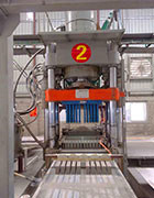 答:有這種認為的人,主要是對液壓傳動的成型機在振動成型時的壓力和砌塊成型的振動系統還不太了解。就拿美國貝賽爾公司生產的BH3-1成型機來說,在振動成型時壓頭油缸的油壓隨著模箱中的拌合料振動密實而同步下降,此時壓頭油缸處于低壓浮動狀態,不可能施加很大壓力;此外,在振動成型時如果施加很大壓力,等于振動荷載大幅增加,振幅大幅度衰減,振動系統振動不起來。因此不論液壓傳動還是氣動、機械傳動的成型機,砌塊成型時主要靠振動使物料密實形成高強度。其實,砌塊強度與原材料級配,配方都有直接的關系。另外,液壓傳動、氣動或者機械傳動的砌塊成型機,成型產量差異并不大,產量的高低主要是看其輔機的配置及整條生產線的自動化程度設計。