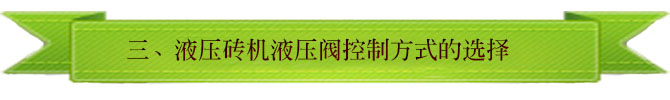 有手動控制、機械控制、液壓控制或電氣控制等多種類型,可根據壓磚機系統的操縱需要和電氣系統的配置能力進行選擇。如小型的不常用的壓磚機系統,工作壓力的調整,可直接靠人工調節溢流閥進行,如果溢流閥的安裝位置離操作位置較遠,直接調節不方便,則可以安裝遠程調壓閥,以進行遠距離控制;如果液壓泵啟閉頻繁。則可選擇電磁溢流閥,以便采用電氣控制,還可選擇初始或中間位置能使液壓泵卸荷的換向閥,以獲得同樣的要求,在許多場合采用電磁換向閥,容易與電氣系統組合,以提高壓磚機系統的自動化程度,而在某些場合,為簡化電氣控制系統并使操作簡便,則宜選用手動換向閥等。
