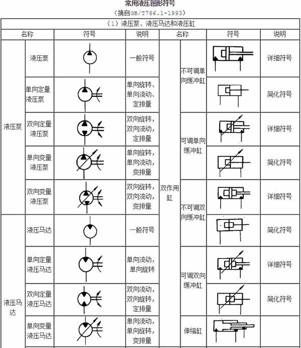圖例說明液壓制磚機中液壓系統(tǒng)圖形的讀取常用符號認識表示